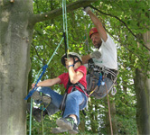 zeigt Aufstiegstechniken in der Baumpflege und führt